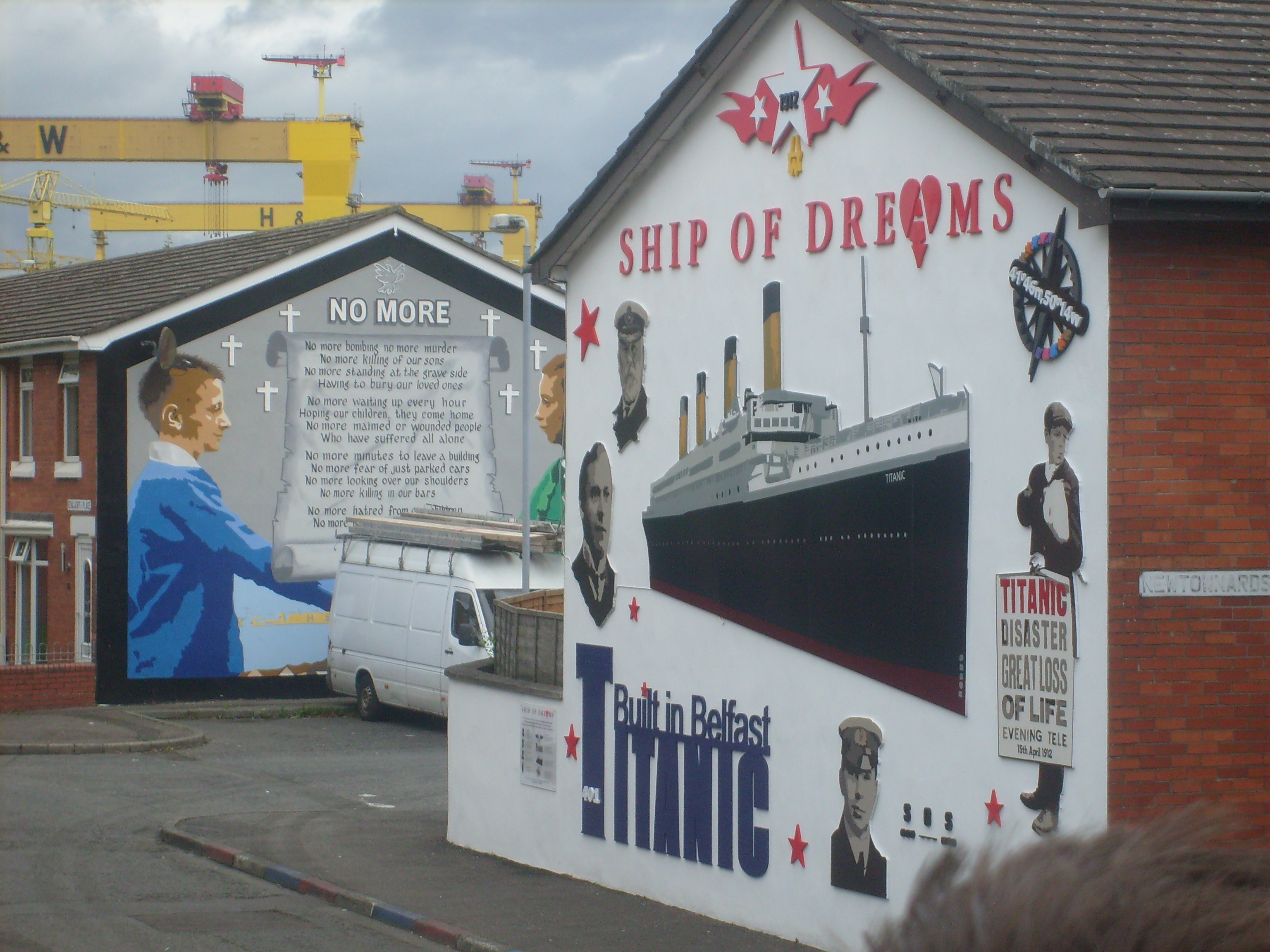 A visitor to the site has asked about the Titanic. These are photographs taken on the Newtownards Road (from open top tourist bus) in East Belfast. Street Art (often political) is one of the alleged tourist attractions of Belfast.