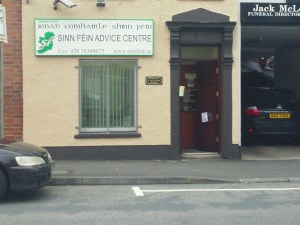 In strictness, this is a Sinn Féin “Assembly Office” rather than the office of John O’Dowd. Situated in a house in the “nationalist” area of North Street, it is named for Sheena Campbell who had been the Sinn Féin candidate in the 1990 by-election . She was shot dead by a loyalist gunman near Queen’s University in 1992.
