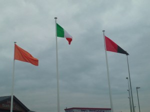 The Irish, Armagh and Down Flags but if Willie Frasr reads this Blog, I want it understood that it is actually the Italian Flag. He would have enjoyed the National Anthem…..obviously it was also Italian.