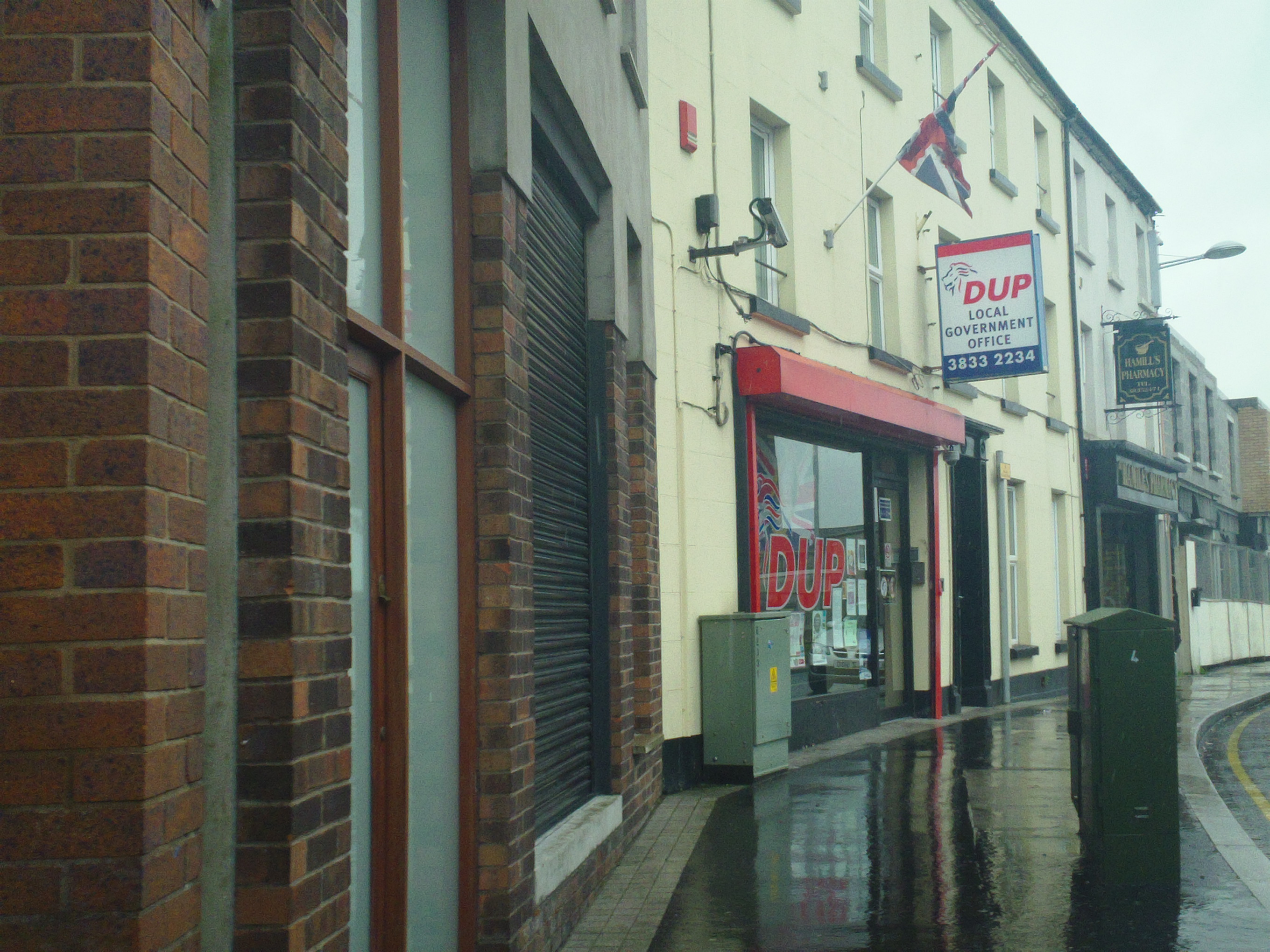Thomas Street in Portadown. I am not wxactly sure that it is Sydney Anderson’s constituency office as the sign says DUP Local Government Office.