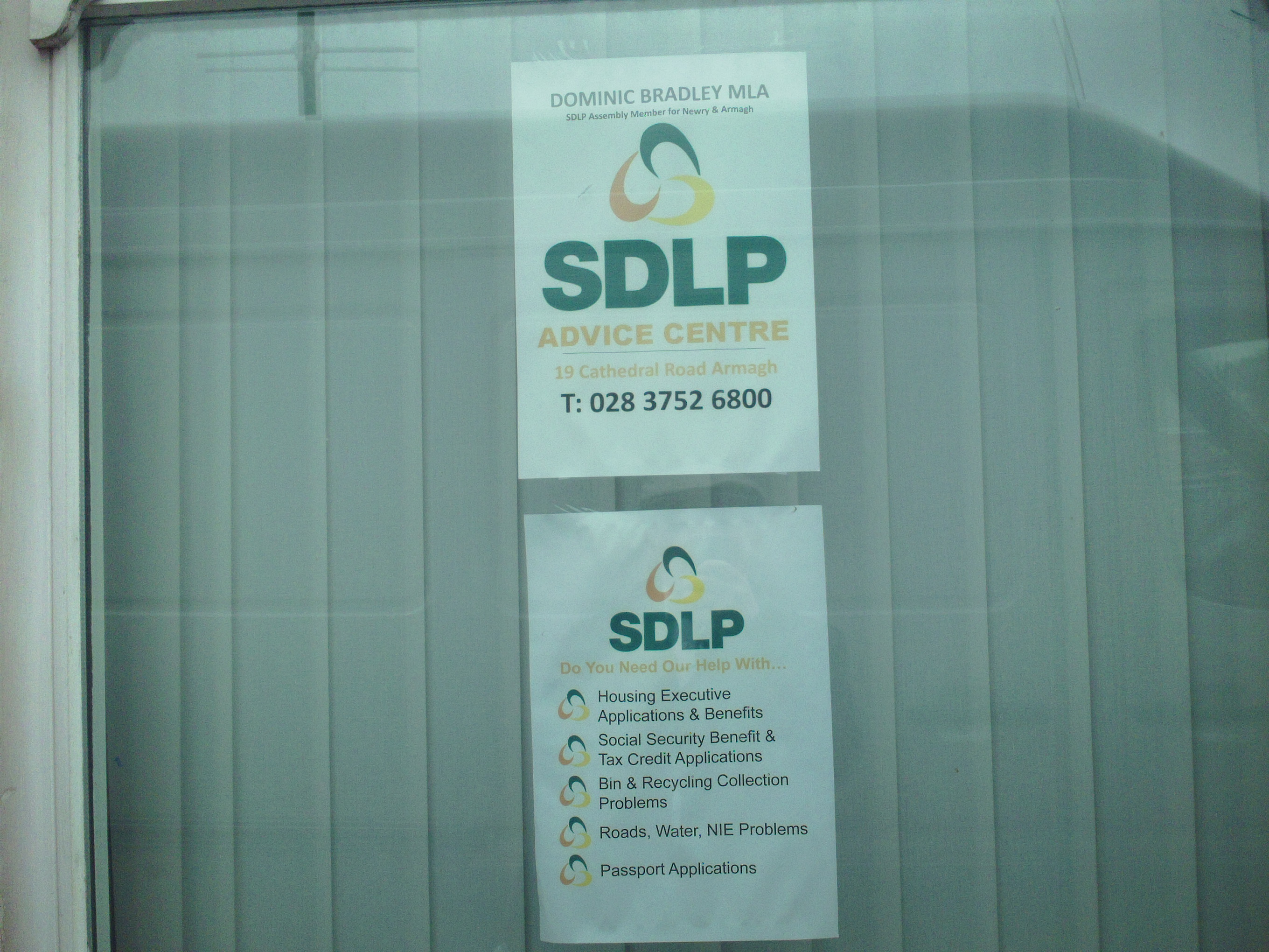 Dominic Bradley SDLP MLA has offices in Armagh and Newry. The Armagh office is situated at Cathedral Road. It was closed (lunchtime yesterday). Essentially there are two kinds of “Constituency Office”. One is styled as an office (in this case) or a shop-front.