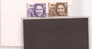 During the same London trip, I bought the two stamps issued to mark the wedding of “Princess Anne” to Mark Phillips, some twenty years previously. It had been announced that Anne was marrying for a second time and as no second “Royal Wedding” stamp issue was planned, I decided….that as an ardent Republican, I should mark the happy event. So they got married on 12th December 1992, just two days after the seperation of Charles and Diana. I dropped the envelope in a Lurgan postbox. I thought it would be postmarked in the normal way….but after it went thru the machines, a member of staff noticed that it was a “special occasion” and as you can see actually hand-stamped the envelope to make it more clear.