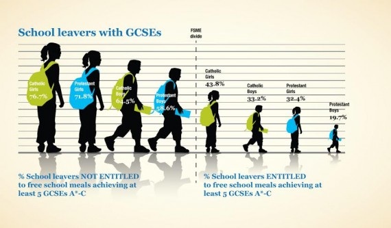 “Catholic” Grammar Schools attract a more (economically) diverse student body than their “State” (de facto Protestant) schools. Proportionately Catholic children are more likely to be entitled to free school meals than Protestants.