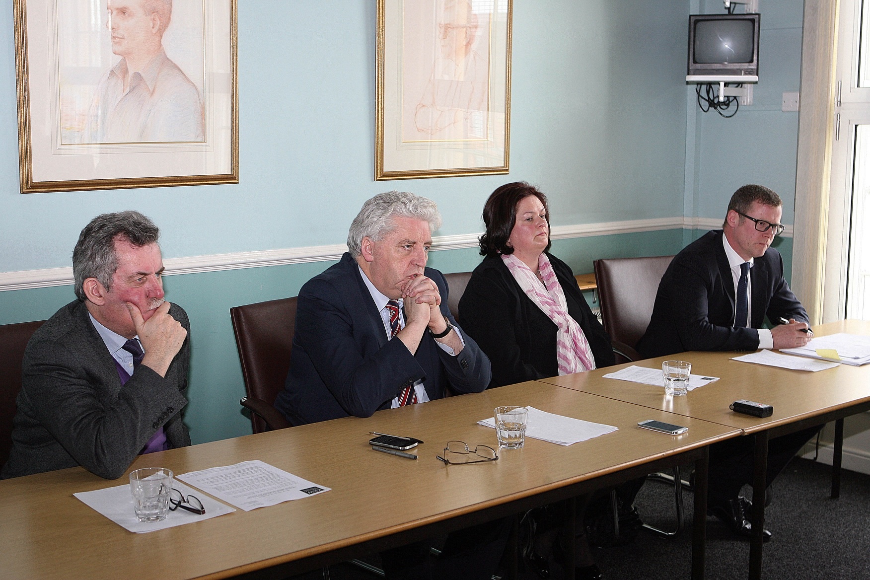 Note the portrait of SDLP founder-member, Paddy Wilson, behind Alban and Alasdair.