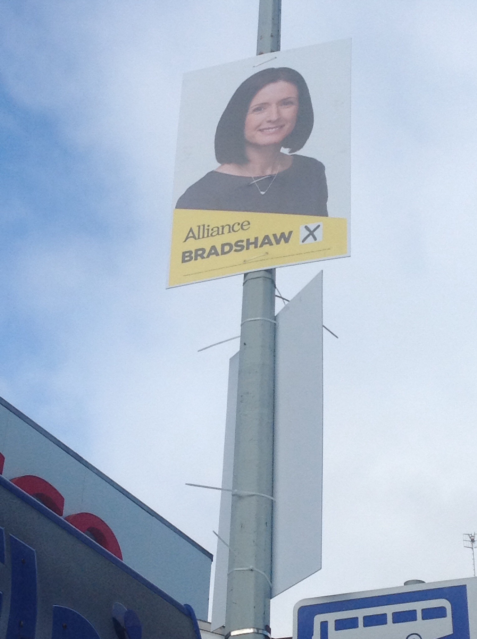 South Belfast. This Paula Bradshaw poster is at Tesco on Lisburn Road.
