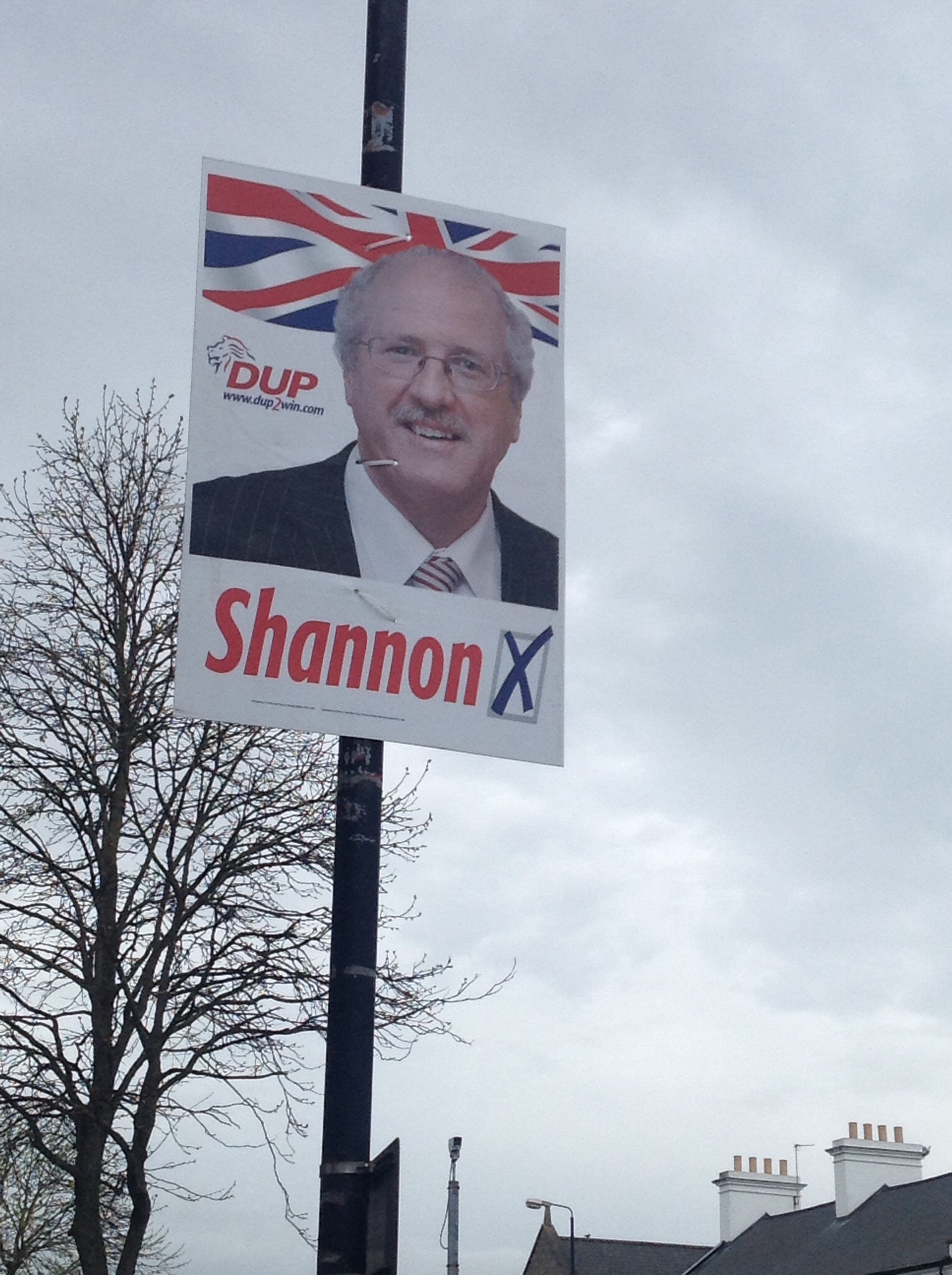 Jim Shannon, DUP…outgoing MP for Strangford. Regent Street, Newtownards.