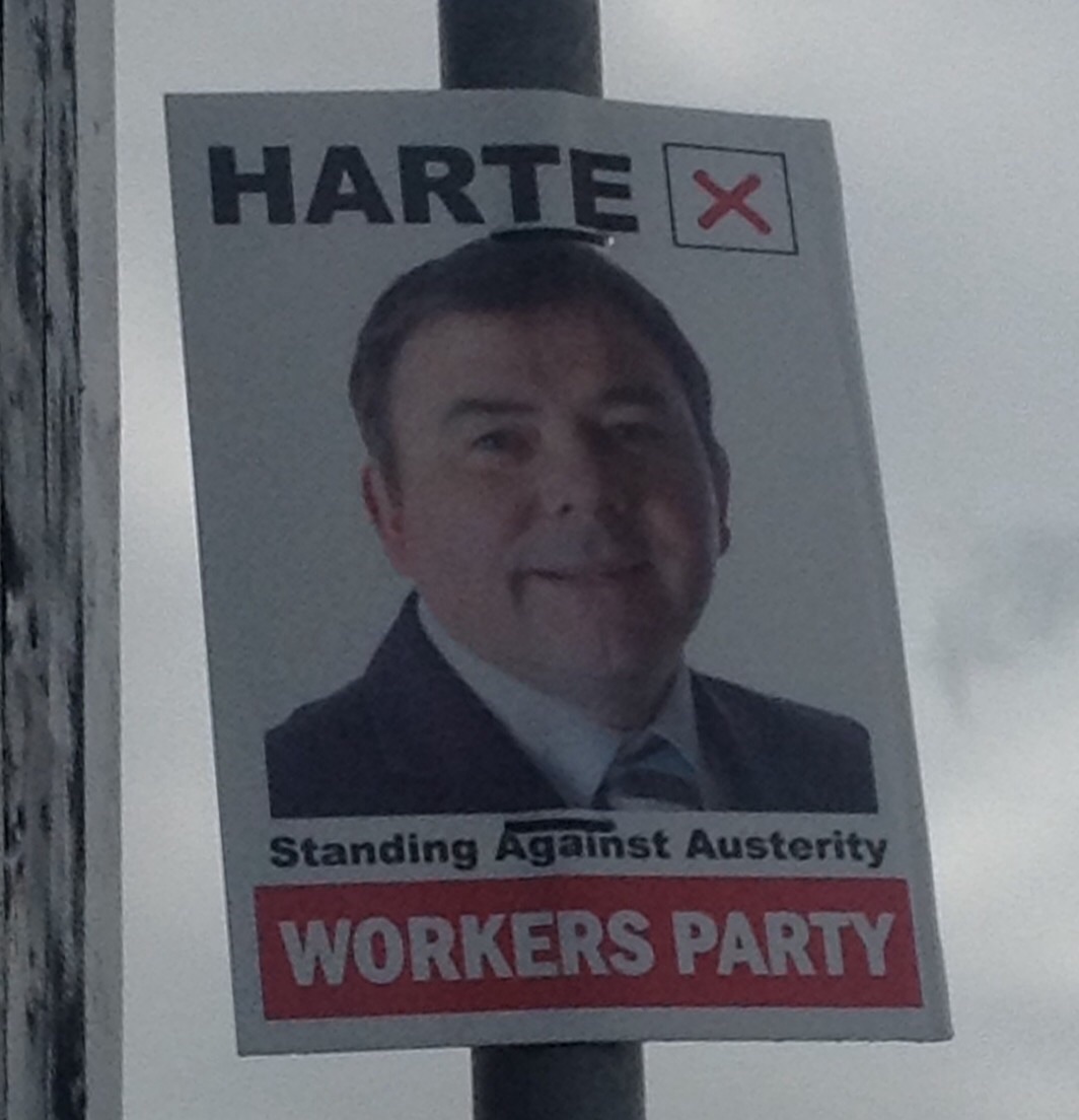 Outside Lurgan Railway Station. I know nothing about Martin Harte (standing in Upper Bann) but I know far too much about the Workers Party (sic).