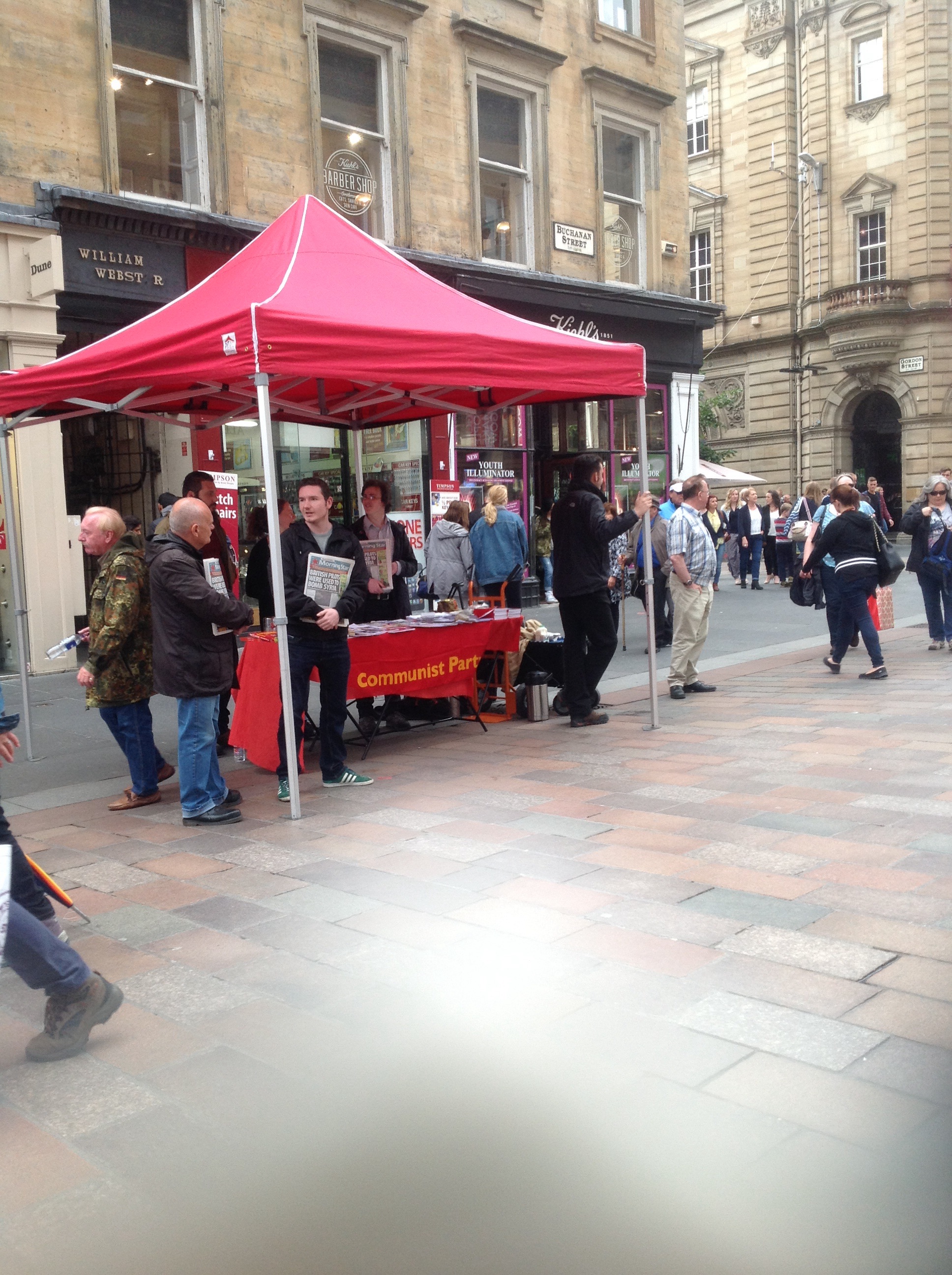 The SWP people were really nice guys. They promised to pass my good wishes to Vanessa Redgrave. Interestingly Labour still controls the Glasgow Council but will be swept away in the next local election. I was told that Labour doesnt like the politicalisation of the City’s most exclusive shopping area. And I was told that SNP, who dont have a stall in the street (they dont need one!) will be much more tolerant of the fringe left-wing groups.