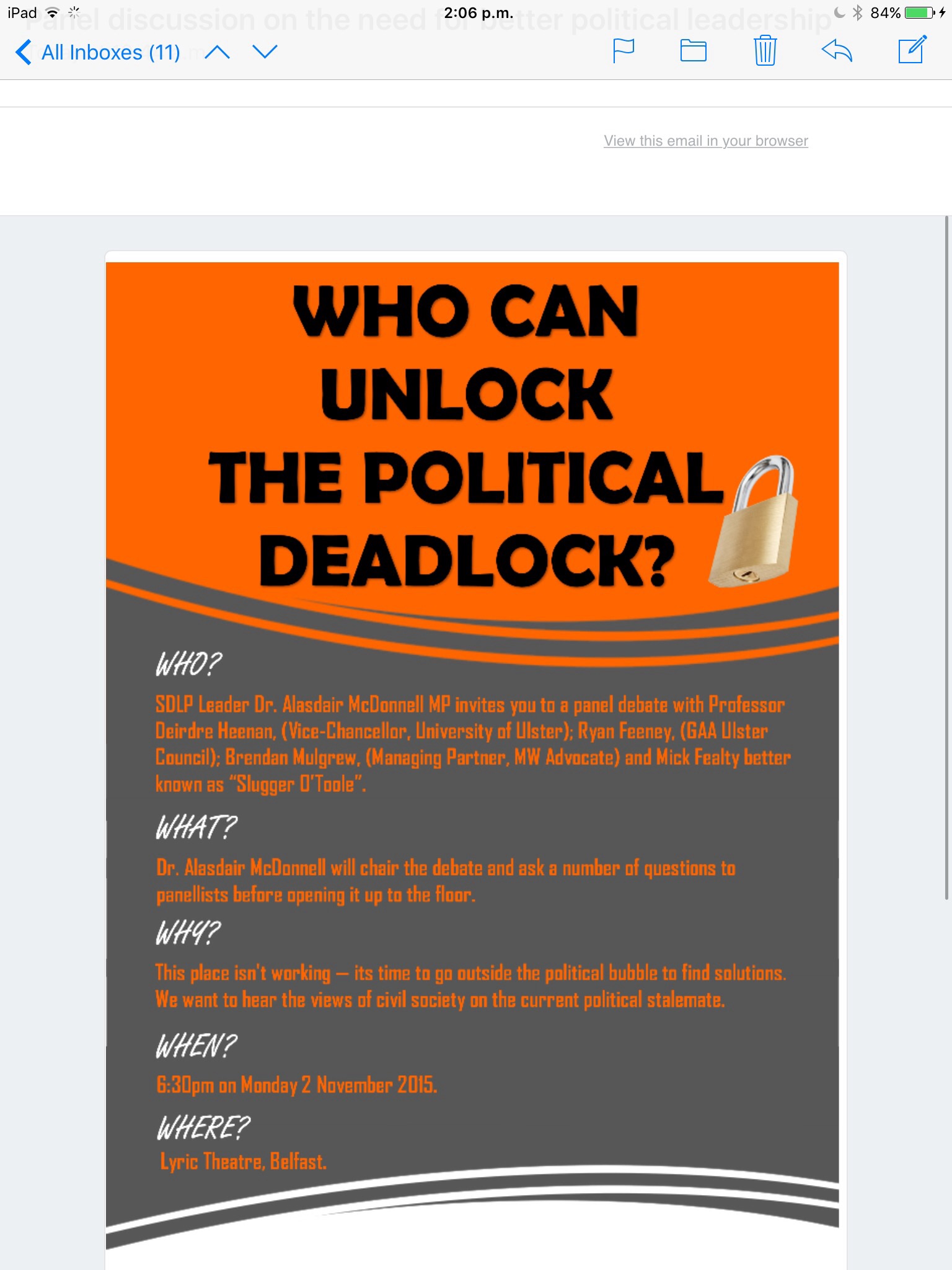 Interesting SDLP event tomorrow night.