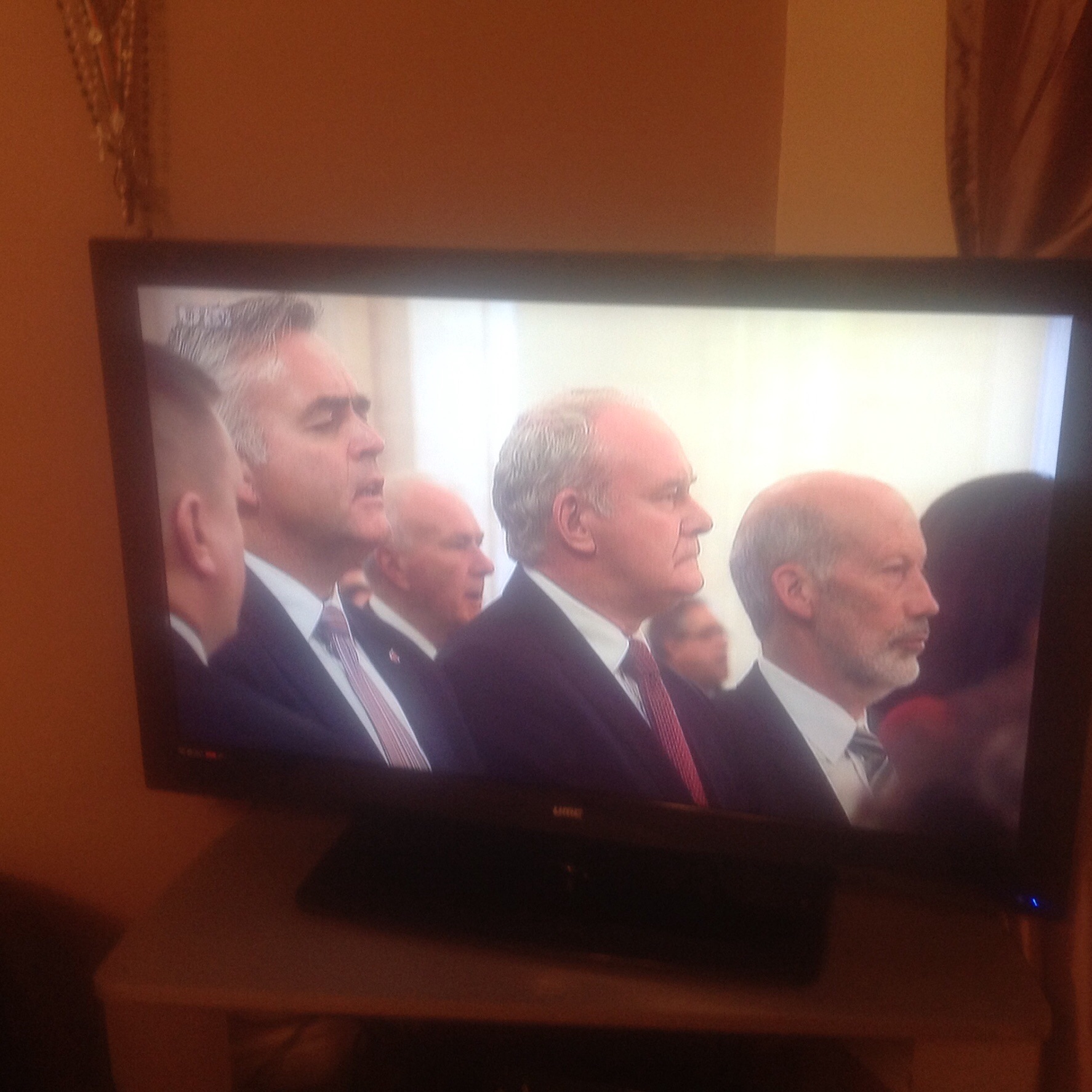 For the first time, the Speaker of the Assembly is a nationalist…Mitchel McLaughlin and he and his panel of Deputy Speakers (one from each of the other parties) lay wreaths.