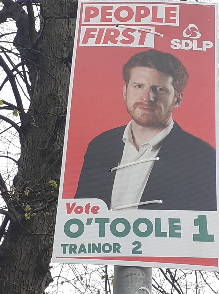 Not too many SDLP posters on Lisburn Road but some O’Toole around City Hospital.