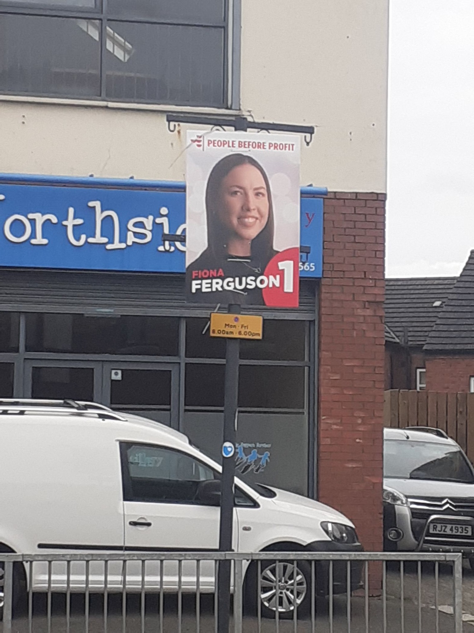 A lot of Ferguson posters. Especially on Antrim Road and New Lodge. I think that the People Before Profit party has lost some impetus. I dont think there will be any real improvement on 1,500 votes.