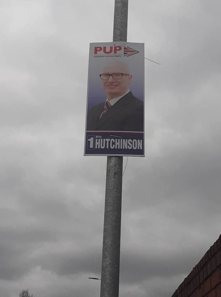 Billy Hutchinson…the loyalist sectarian killer. He was jailed for a double murder, when two Catholics were shot dead in a drive-by shooting. The awkward thing about the 1998 Good Friday Agreement is that we had to tolerate people like him. The defection of Corr-Johnson in North Belfast and John Kyle in East Belfast …both to UUP…means that PUP is stripped of all pretence at Respectability. They will lose votes. A lot of Hutchinson posters around Shore Road and Tigers Bay.