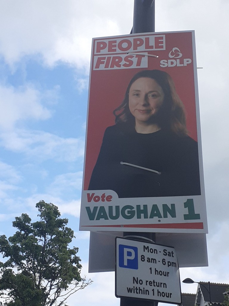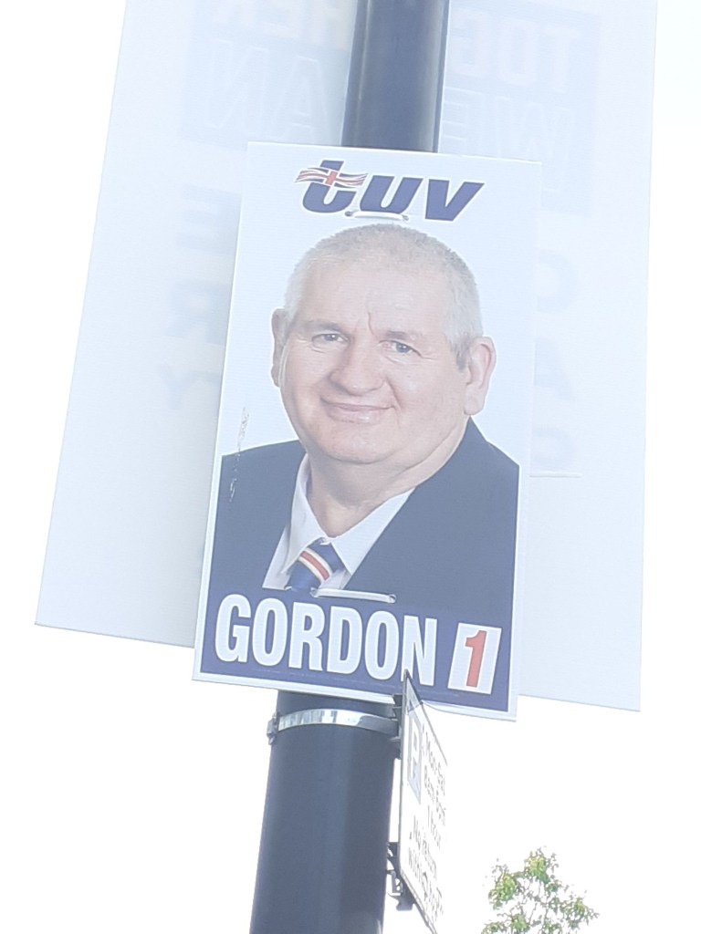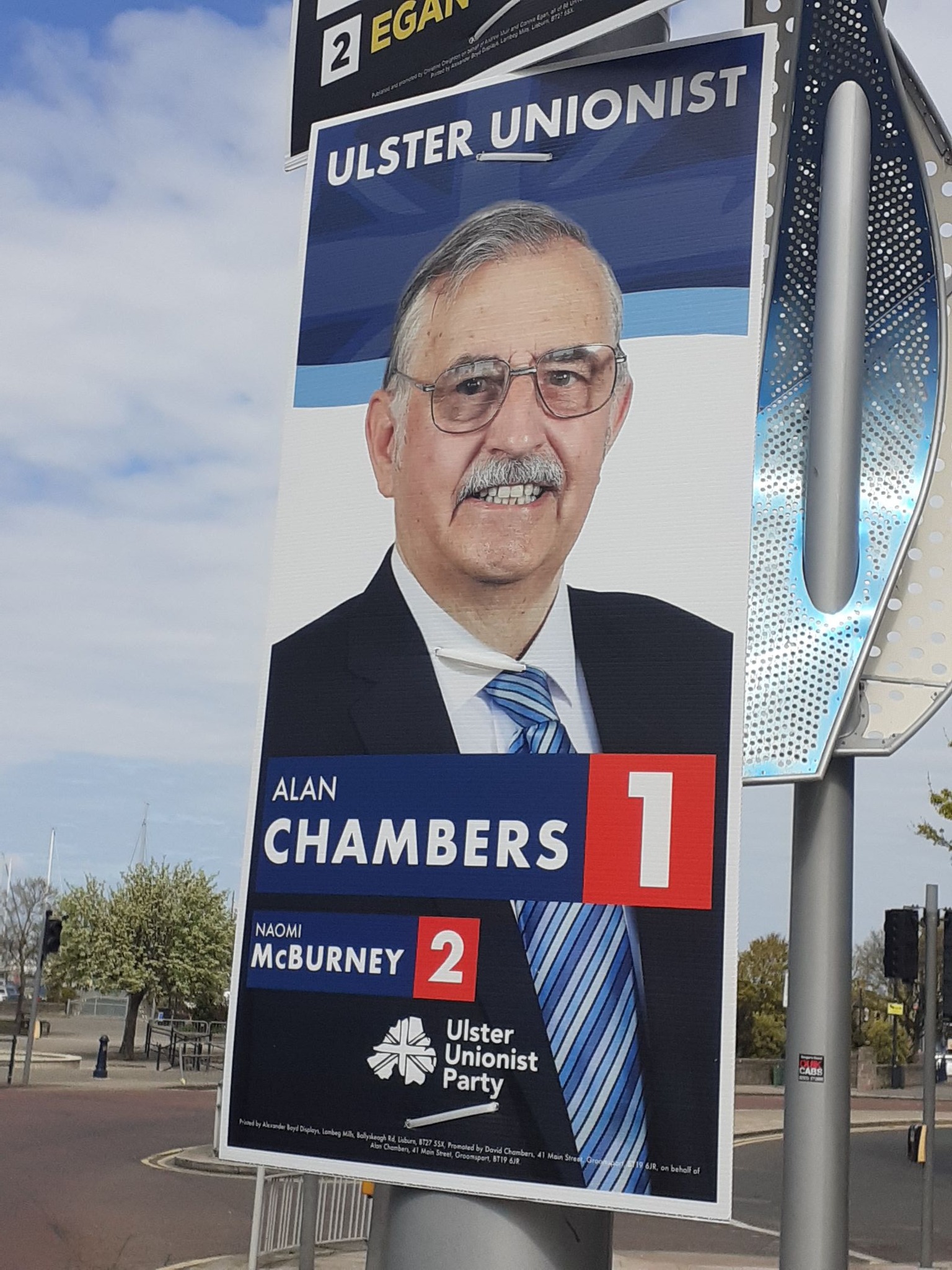 An odd one. The UUP is allegedly modernising under Doug Beattie. But it seems like it is in transition and the two election posters (Alan Chambers in Bangor) and Naomi McBurney in Holywood mostly) seem to underscore the transition.