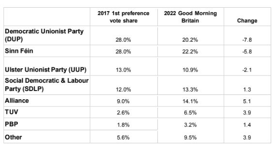 What I cant get is that SF and DUP and maybe Green are losing votes……but I think AP, SDLP UUP are gaining votes but it just doesnt feel right.
